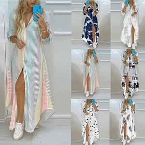 Kadın rahat batı seksi baskı elbise uzun kat uzunluk etek şifon kumaş ile bir boyut doğal bel yaz dokuma uyar